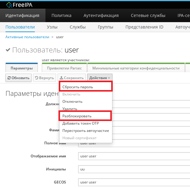 Сброс пароля (разблокирование) доменного администратора FreeIPA